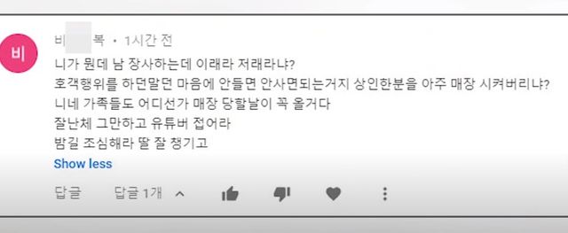 그는 불법적인 행위를하는 수산시장을 저격을 했는데 이에 상인들이 딸 잘 챙기고 밤길 조심하라고 댓글을 남긴 것입니다. 방귀 뀐 놈이 성을 낸다더니 딱 그꼴이네요.