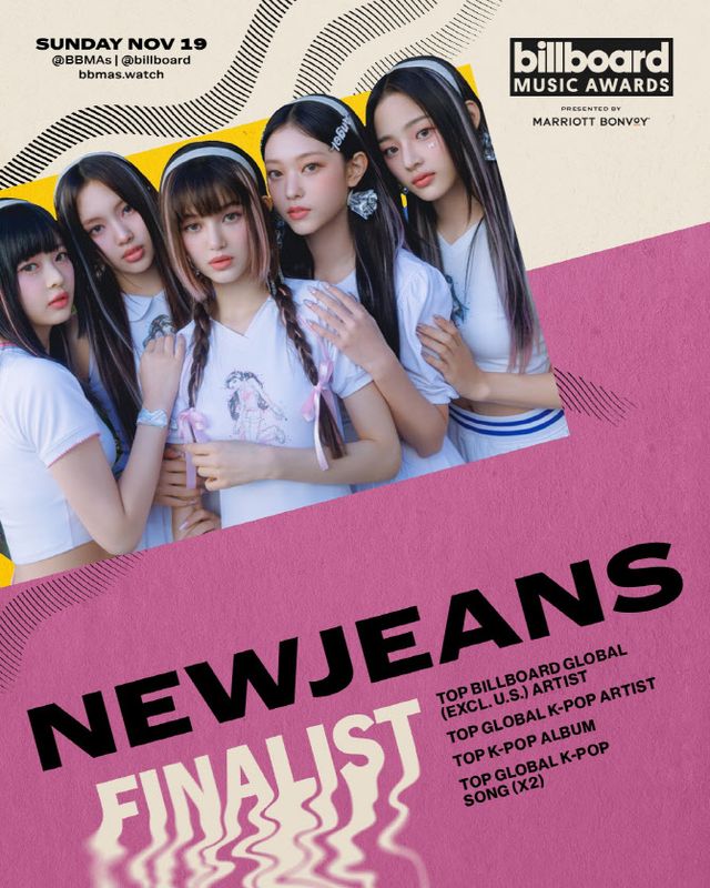 뉴진스는 톱 빌보드 글로벌(미국 제외) 아티스트, 톱 글로벌 K팝 아티스트, 톱 K팝 앨범 부문에 이름을 올렸고, 톱 글로벌 K팝 송 부문에 ‘디토’(Ditto)와 ‘OMG’ 2곡을 후보로 올렸다.