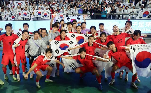 本月7日,韩国男足在杭州亚运会上击败日本队夺得金牌。【图片提供 韩联社】