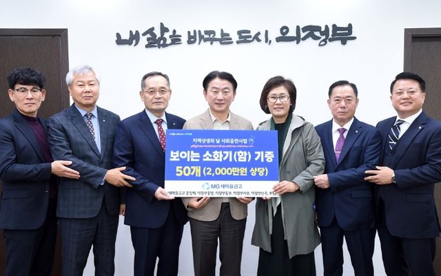 시장실에서 열린 기증식에는 MG새마을금고 의정부중앙, 의정부서부, 의정부동부, 의정부신곡, 호원 이사장과 시 공무원 등이 참석했다.