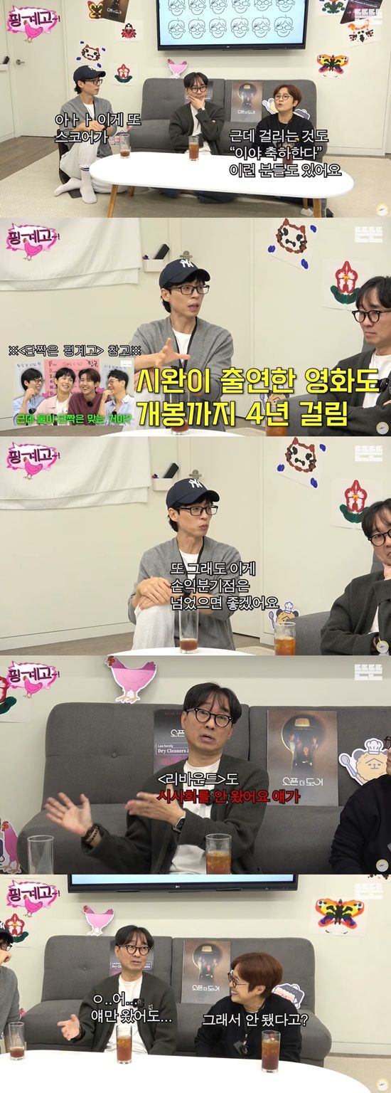 이날 유재석은 "영화가 이제 극장에 걸리는 거 아닌가. 그런데 또 스코어가"라며 흥행 성적에 대해 언급했다. 송은이는 "근데 (극장에) 걸리는 것도 '죽하한다' 이런 분들도 있다"면서 영화계의 어려움을 전했다.