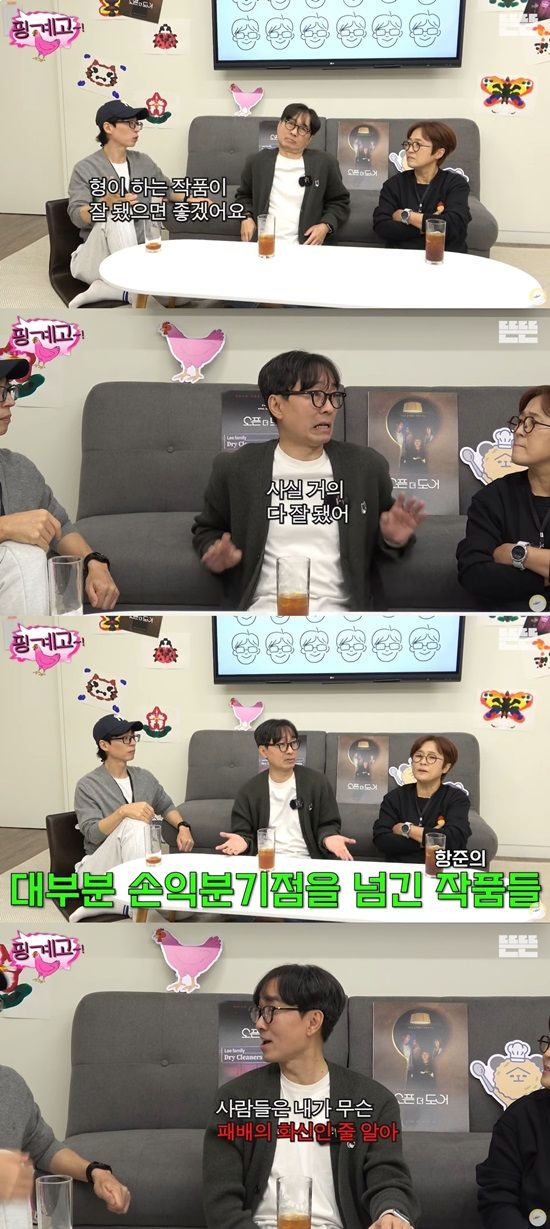 유재석은 "저는 형이 하는 작품이 잘 됐으면 좋겠다"고 말했는데, 장항준 감독은 "사실 거의 다 잘 됐다. 드라마나 영화가 손익분기점 거의 다 넘었다"고 말했다.