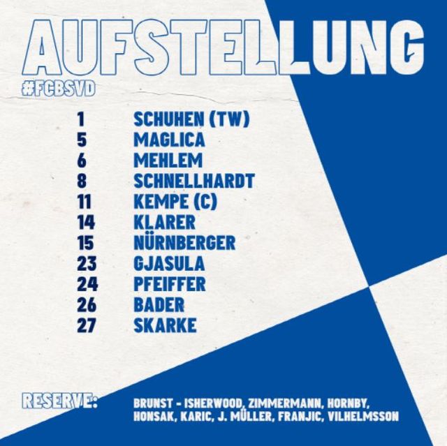원정팀 다름슈타트는 3-1-4-2로 맞선다. 마르셀 슈헨이 골문을 지키고, 마테흐 마글리카, 클라우스 자슐라, 크리스토프 클러르가 백3를 구성했다. 중원은 3선에 파비안 뉘른베르거, 파비안 슈넬하르트, 마티아스 바데르, 토비아스 켐페, 2선에는 마빈 메흘렘이 위치했다. 투톱에는 팀 스카르케, 루카 파이퍼가 뮌헨 골문을 노렸다.