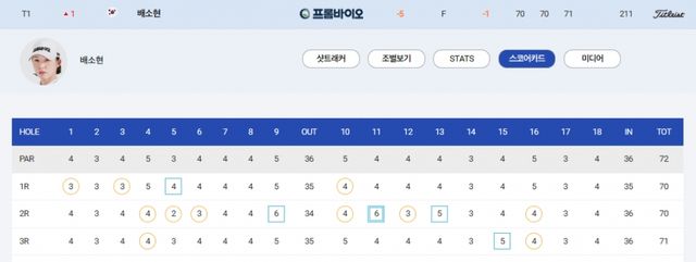 3R : 1언더파 71타(버디 2개, 보기 1개) 3라운드합계 5언더파 211타 공동1위