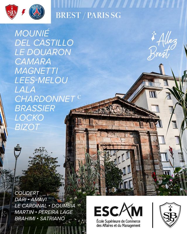 이날 홈팀 브레스트는 4-3-3으로 나섰다. 마르코 비조트가 골문을 지키며, 케니 랄라, 브렌당 샤르도네, 릴리앙 브라시에, 브래들리 로코가 수비진을 지켰다. 중원은 유고 마그네티, 피에르 레에스-멜로우, 메흐디 카마라가 호흡을 맞췄다. 최전방에는 로맹 델 카스티요, 마르틴 사트리아노, 제레미 르 두아론이 나섰다.