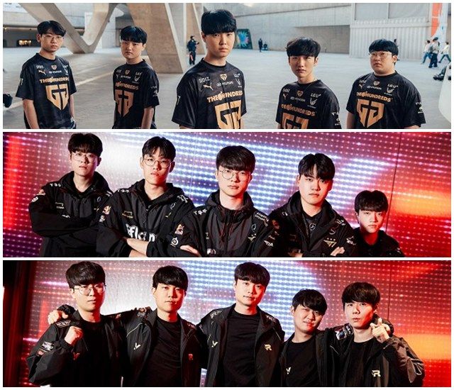 '2023 롤드컵' 8강 진출한 젠지, T1, KT(사진 위부터) /라이엇게임즈