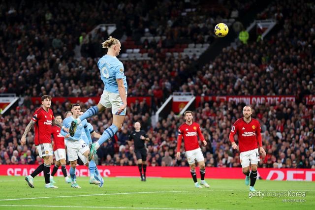 맨시티는 30일(한국시간) 영국 맨체스터의 올드 트래퍼드에서 열린 2023~24 잉글랜드 프로축구 프리미어리그(EPL) 10라운드 원정 경기에서 맨체스터 유나이티드(맨유)를 3-0으로 대파했다. '괴물 골잡이' 엘링 홀란이 2골 1도움으로 올드 트래퍼드를 침묵케 했다.