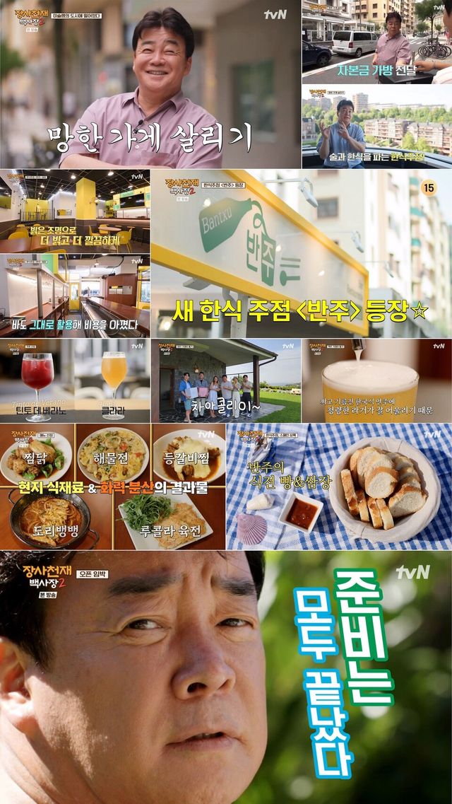 이날 방송에서는 미식의 천국, 스페인 ‘산 세바스티안’ 공략에 나선 백종원이 한국식 주점 ‘반주’를 창업, 첫 장사를 시작했다. 백종원에게 주어진 첫번째 미션은 미슐랭 식당을 비롯해 대형 프랜차이즈 식당 등 잘 나가는 음식점들이 즐비한 먹자 골목에서 유일하게 폐업한 가게를 살려내라는 것. 자본금 4200만원의 한정된 예산 안에서 인테리어부터 필요한 물품과 식자재를 구입해야 하는 백종원은 고심에 빠졌다.