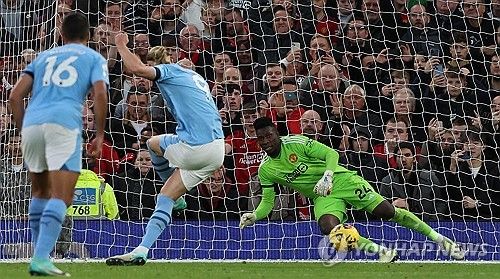 키커로 나선 건 '괴물 공격수' 홀란이었다. 홀란은 왼발로 왼발로 낮게 깔아차서 골로 만들었다. 직전 경기였던 코펜하겐과의 유럽축구연맹(UEFA) 챔피언스리그 경기에서 페널티킥을 선방해 1-0 승리를 지킨 맨유 수문장 안드레 오나나는 이번엔 슈팅 방향을 잘못 읽으면서 실점을 막지 못했다.