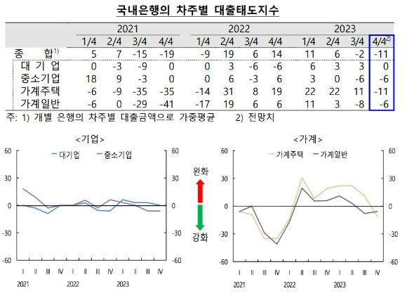 국내 은행의 차주별 대출 태도 지수 현황 [사진=한국은행]