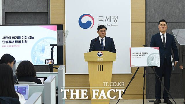 정재수 국세청 조사국장이 30일 오전 세종시 정부세종청사 국세청에서 민생침해 탈세자 세무조사 내용을 발표하고 있다. /세종=이동률 기자
