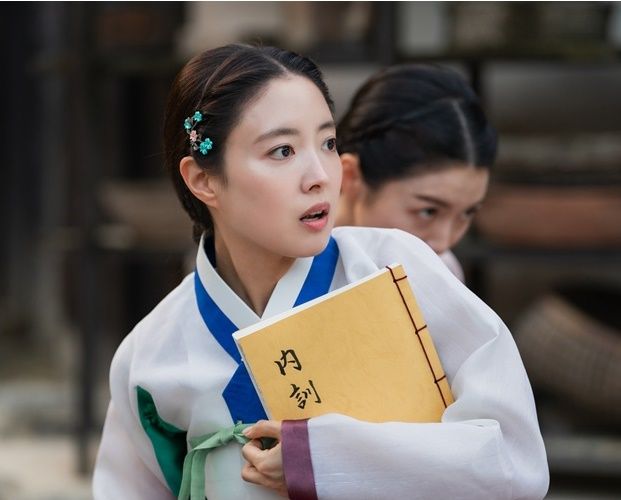 박연우(이세영)가 보라색 너울을 쓰고 신비로운 자태를 뽐냈던 ‘호접 선생’ 복장과는 달리, 화사한 한복을 입고 집마당에 서 있는 장면. 박연우는 밝은색 저고리에 진분홍색 치마, 곱게 땋아 내린 댕기 머리를 한 채 내훈(부녀자의 훈육을 위하여 편찬한 책) 서책을 들고 단아함을 뽐낸다.