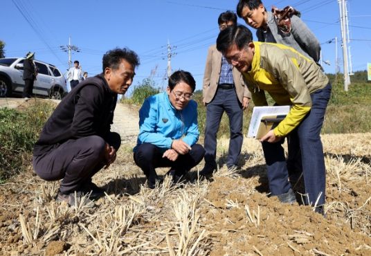 | ▲ 강진원 군수, 쌀귀리 파종 농가 방문 격려 |