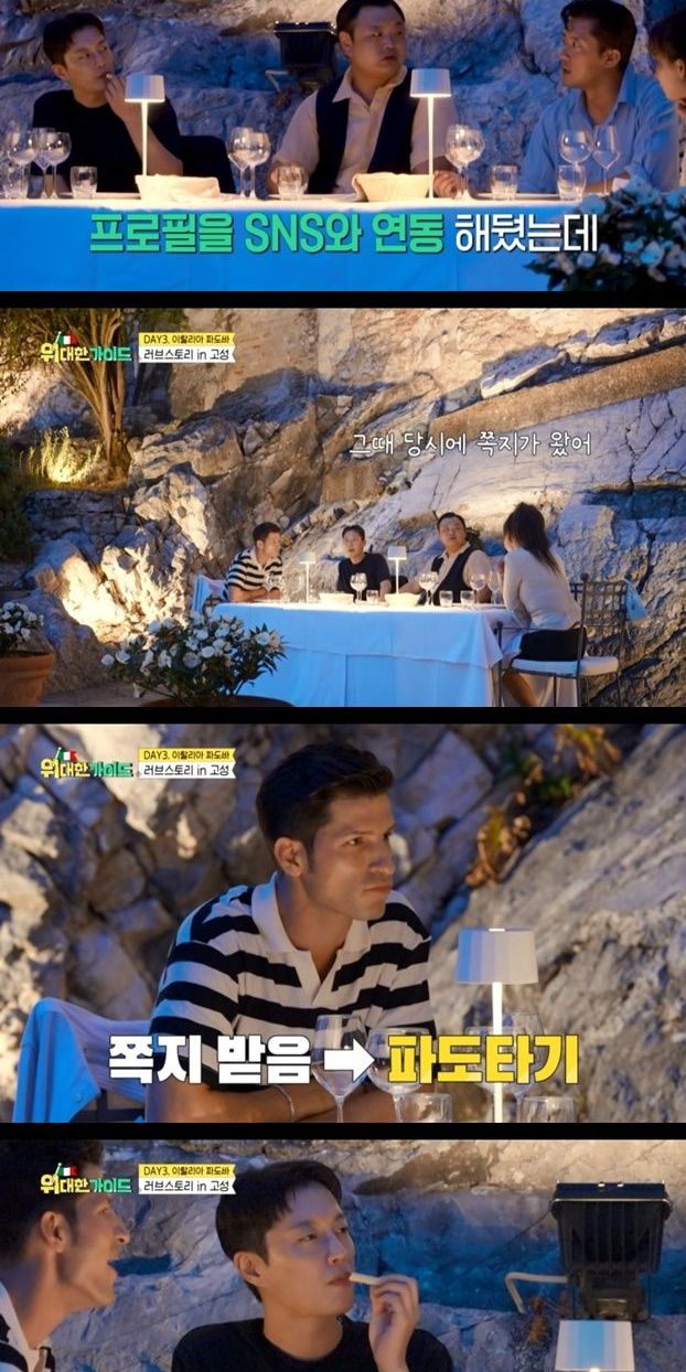 고규필의 러브 스토리를 듣던 김대호는 잠시 생각에 잠겼다. 김대호는 "이탈리아에 처음 왔을 때 어떤 생각이 들었냐면 전에, 전에 사귀던 여자친구가 이탈리아에서 유학을 했다"라고 밝혔다.