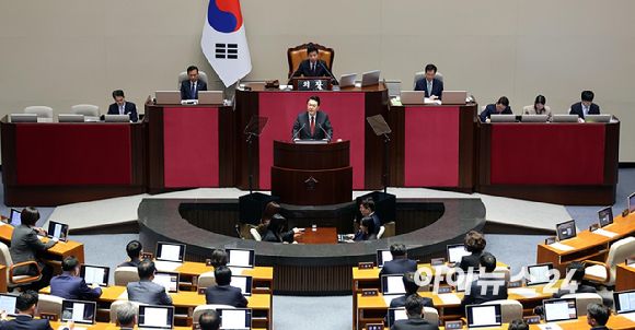[아이뉴스24 김주훈 기자] 국민의힘이 31일 윤석열 대통령의 2024년도 예산안 시정연설에 대해 "오로지 민생을 위한 소통·협치의 장이 되길 희망한다"고 말했다. 박정하 수석대변인은 이날 윤 대통령 시정연설 후 공식 논평을 통해 이같이 밝혔다.