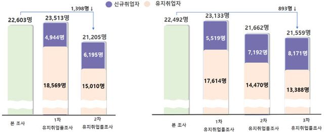 조사 결과 전체 졸업자(7만1591명) 중 진학자(3만3621명)·입대자(1940명)·제외인정자(971명)를 뺀 취업대상자는 총 3만5059명이다. 제외인정자는 사망자·수형자·장기입원자 등 조사기준일 당시 경제활동이 어려운 자를 말한다. 이들을 제외한 졸업생 중 취업자 수는 1만9526명으로 취업률은 55.7%를 기록했다.