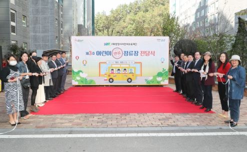 김인수 입주자대표 회장은 “평소 아파트 앞에서 차량을 기다리는 아이와 부모들을 보면서 안전사고 우려가 컸는데, 어린이 안심 정류장이 설치돼 부담감을 던 것 같아 기쁘다”며 “좋은 사업을 지원해주신 어린이보육재단에 수시아 아파트를 대표해 감사의 마음을 전한다”고 밝혔다.