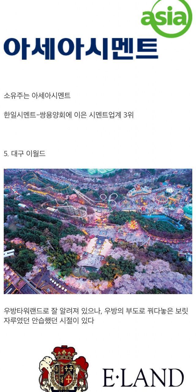 국내 주요 놀이동산의 운영사