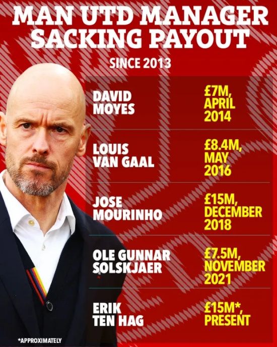 턴 하흐가 만약 이번에 경질된다면 2018년 12월 리버풀과의 노스웨스트더비 참패 후 경질된 조세 무리뉴 감독의 위약금 기록과 타이를 이루게 된다.