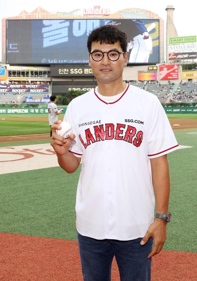 '코리안 특급' 박찬호가 지난해 7월 28일 오후 인천시 미추홀구 SSG 랜더스필드에서 열린 LG 트윈스와 SSG 랜더스의 경기에 앞서 열린 시구 행사를 마친 후 포즈를 취하고 있다. / SSG 랜더스 제공-뉴스1