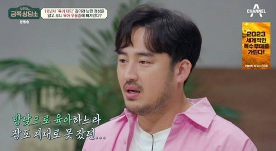 이날 정성윤은 육아 전담 이유에 대해 "자의로 한 건 아니었고 수입이 더 좋은 아내가 경제 활동을 하고 제가 육아를 도맡게 됐다"고 얘기했다.