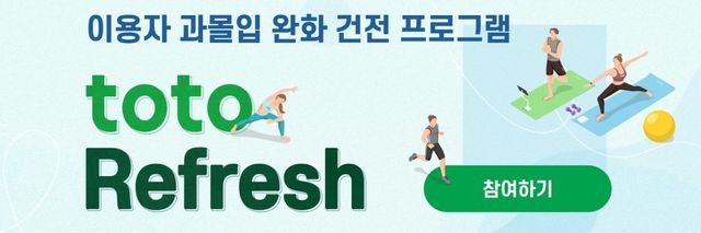 스포츠토토코리아 관계자는 “스포츠토토의 건전성을 높이기 위해 ‘toto Refresh’ 프로그램을 오프라인으로 확대해 적극적으로 운영하고 있다”며 “11월에는 선발된 인원을 대상으로 과몰입 완화 힐링캠프도 진행할 계획”이라고 밝혔다.