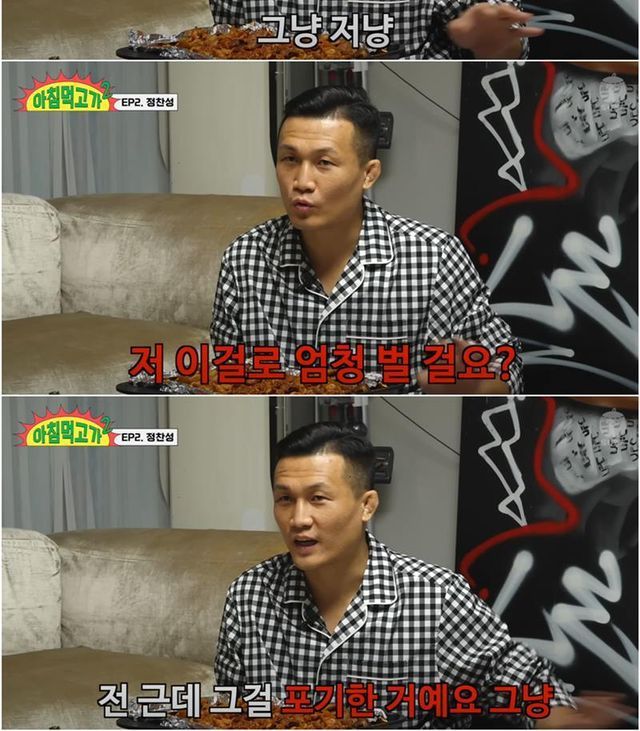 정찬성은 지난 31일 아나운서 겸 방송인 장성규의 유튜브 콘텐츠 '아침먹고가2'에 올라온 영상 '직장인의 꿈 = 돈 많은 백수 생활 중인 정찬성'에 게스트로 출연했다.