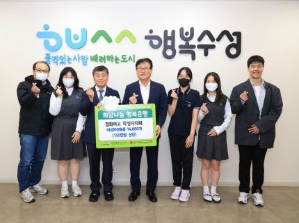 김대권 수성구청장은 “어려운 이웃을 위해 따뜻한 마음을 모아준 정화여고 학생들에게 감사드리며 도움이 필요한 곳에 소중히 전달하겠다”고 말했다.