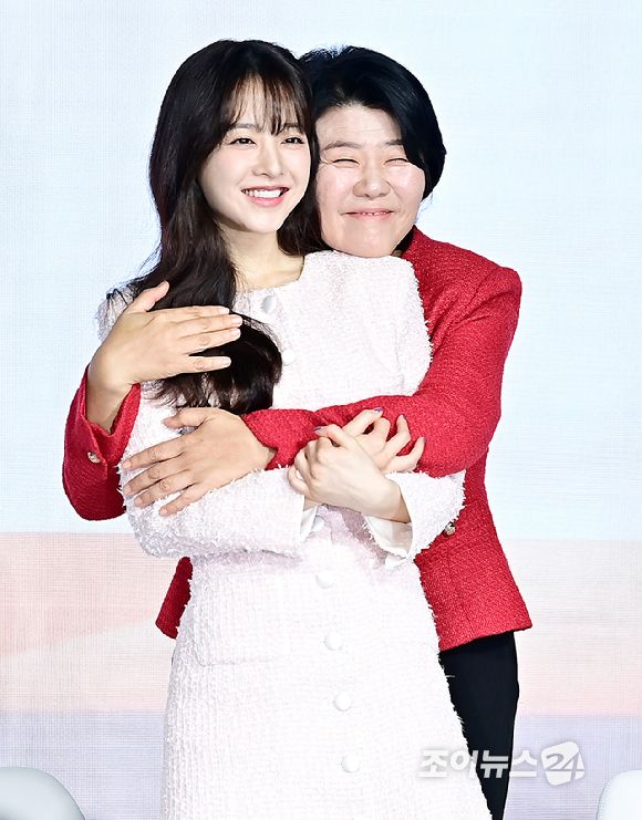 배우 박보영, 이정은이 1일 오전 서울 종로구 JW 메리어트호텔 동대문 스퀘어에서 열린 넷플릭스 '정신병동에도 아침이 와요' 제작발표회에서 포토타임을 갖고 있다. [사진=곽영래 기자]