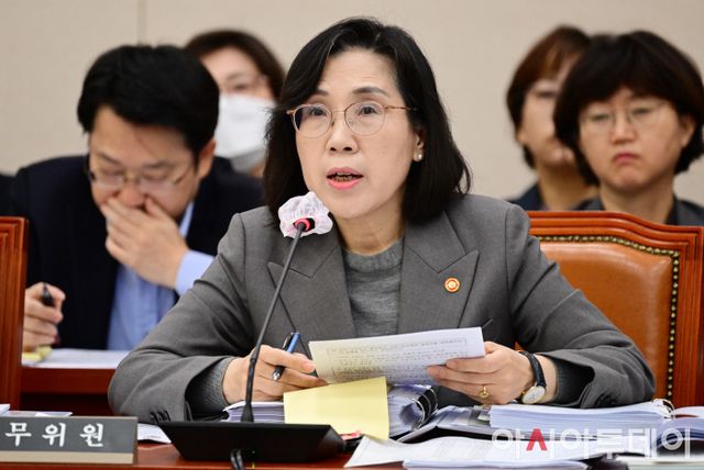 아시아투데이 이병화 기자 = 김현숙 여성가족부 장관이 2일 국회에서 열린 여성가족위원회의 여성가족부에 대한 국정감사에서 의원들의 질의에 답변하고 있다.