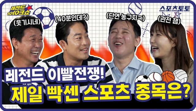 스포츠토토 공식 유튜브 채널의 ‘레전드 이빨전쟁 toto크쇼’는 스포츠팬들을 위해 화려한 입담을 지닌 각 종목의 레전드 선수들이 한 자리에 모여 다양한 주제로 대담을 나누는 토크쇼다.