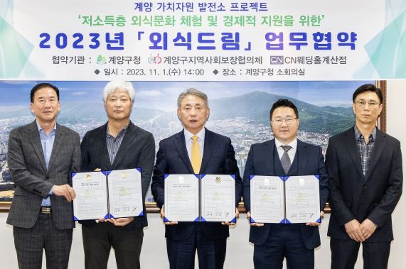 [파이낸셜경제=김윤정 기자] 인천광역시 계양구는 지난 1일 계양구청 소회의실에서 계양구지역사회보장협의체, CN웨딩홀계산점과 취약계층 외식문화 체험을 위한 ‘외식드림 업무협약’을 체결했다.
