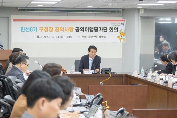 이날 회의에는 공약이행 평가단원 13명 및 담당부서장 26명이 참석했으며, 2023년 3분기 기준 공약사업 추진실적 및 이행 상태를 점검하고 변경 내역에 대한 설명과 관련 의견을 청취했다.