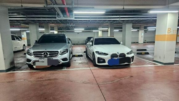 공개된 사진에 따르면 해당 주차장에는 공간이 충분한데도 불구하고 벤츠, BMW 차량들이 주차선을 침범한 채 제멋대로 주차했다.