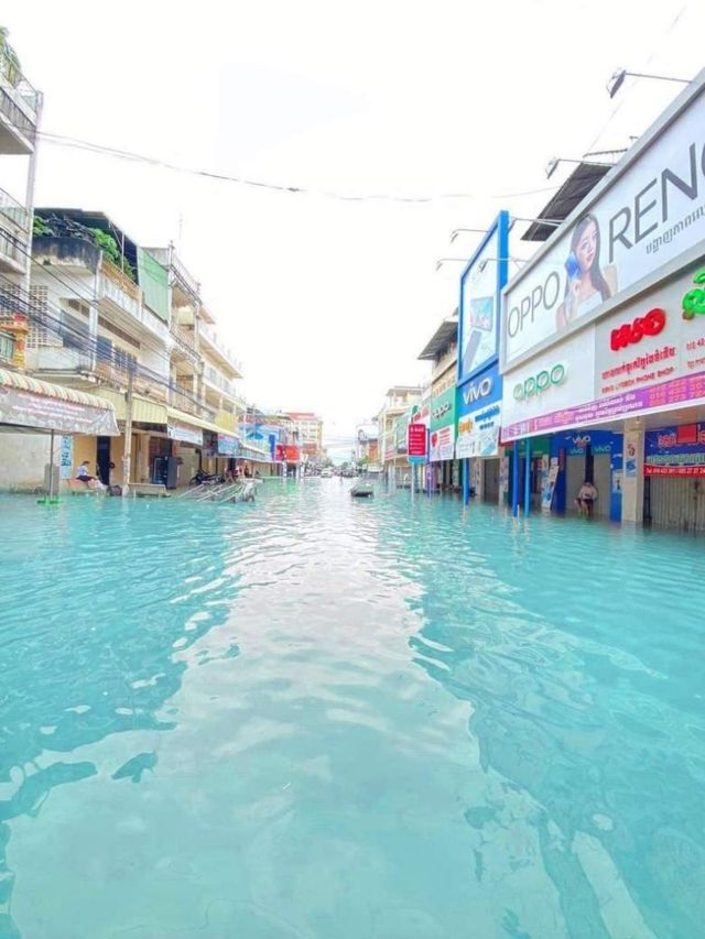 원래 홍수라고 하면, 상류에서 물이 넘쳐 각종 토사류들이 섞여 지저분한 물이 넘치기 마련인데 이번 캄보디아 홍수는 마치 베네치아를 연상시키는 맑고 깨끗한 물로 가득 찬 것입니다. 놀라운 광경에 사람들은 의외로 기분이 좋다고 하네요.