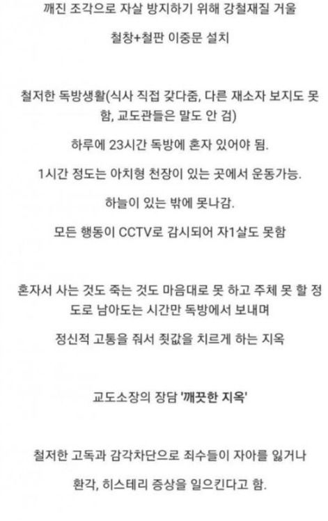 차라리 죽고 싶어지는 감옥
