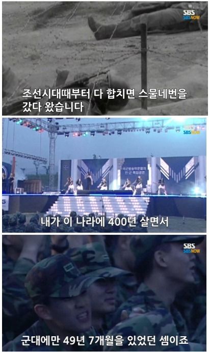 사실 웃으면서 지나갈 수 있는 대사지만 남자의 입자에서 보면 정말 가슴 아픈 상황이네요 ㅜㅜ 군대를 24번, 차라리 자살할 것 같습니다.