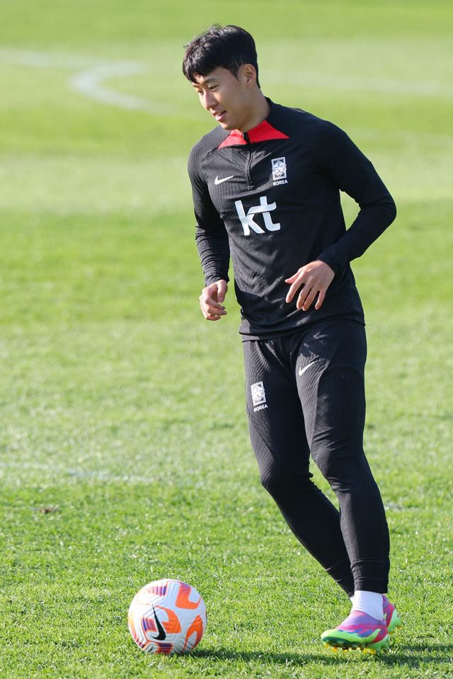 손흥민이 지난달 12일 경기도 파주NFC(축구대표팀 트레이닝센터)에서 훈련하고 있다. / 연합뉴스