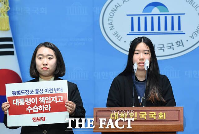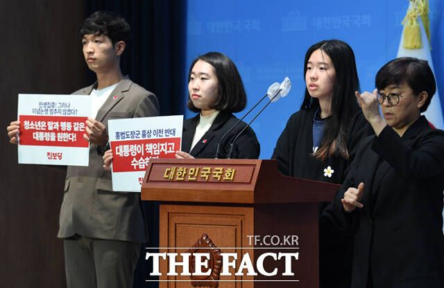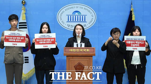 이후 진보당 청소년특위는 기자회견문을 통해 "윤석열 대통령이 진심으로 민생에 집중하고 미래세대를 위해 국정 운영하겠다면 지금 당장 책임지고 이번 논란을 수습하라"고 촉구했다.