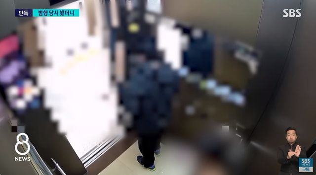 범행 당시 피해 여성과 엘리베이터에 같이 탑승한 20대 가해 남성 / 유튜브 'SBS 뉴스'