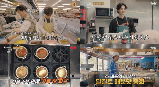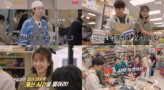 이날 방송에서는 어쩌다 미국 한인 마트를 열흘간 운영하게 된 '사장즈' 차태현과 조인성, '경력직 알바즈' 한효주, 임주환, 윤경호가 본격적으로 영업을 시작하며 마트 손님들과 마주한 모습이 그려졌다.