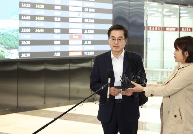 중국 출장을 마치고 3일 돌아온 김동연 지사는 이날 오후 김포공항 입국장에서 만난 기자들에게 "김포시 서울 편입 주장은 한마디로 서울 확장이고 지방 죽이기"라며 "나라의 미래는 안중에도 없고 오로지 김포시민을 표로만 보는 발상에서 비롯된 일"이라고 비판했다.