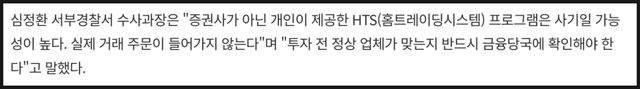 문제가 발생한 회사에서도 HTS프로그램을 개인이 제공하는 등으로 많은 분들이 피해를 본 것입니다.