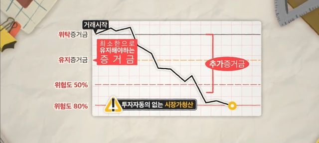 거래 시 손실로 인해 증거금이 일정 수준 밑으로 내려갈 경우 추가로 입금하는 증거금 (추가 입금이 없을 시 강제 청산)