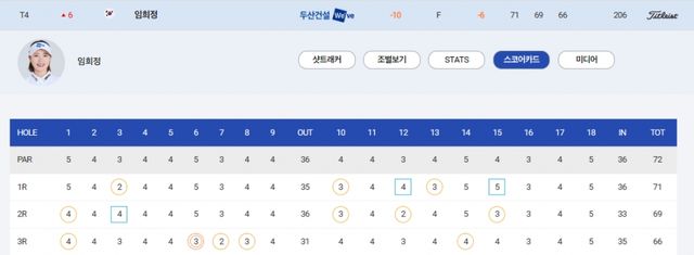 3R : 6언더파 66타(이글 1개, 버디 4개) 3라운드합계 10언더파 206타 공동4위