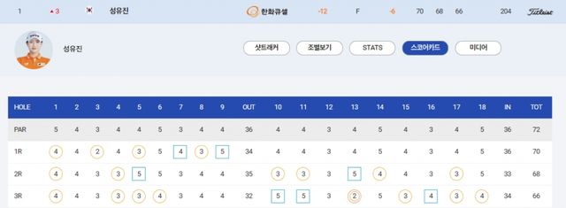 3R : 6언더파 66타(이글 1개, 버디 7개, 보기 3개) 3라운드합계 10언더파 204타 1위