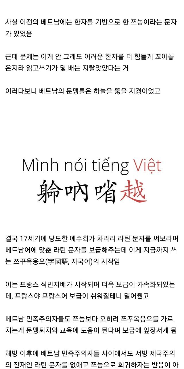 베트남이 자국 문자로 라틴 문자를 쓰게 된 이유 ,,