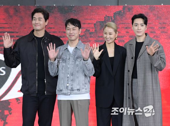 6일 오전 서울 그랜드 인터컨티넨탈 서울 파르나스에서 디즈니+ 오리지널 시리즈 '비질란테'(감독 최정열) 제작발표회가 진행됐다. 현장에는 유지태, 이준혁, 김소진, 최정열 감독이 참석했다.