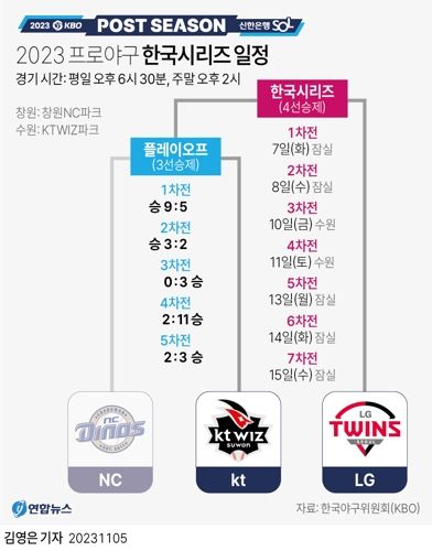 2023년 한국프로야구 최강자를 가리는 한국시리즈(KS·7전 4승제)의 핵심어는 '신바람'(LG 트윈스)과 '마법'(kt wiz)이다.