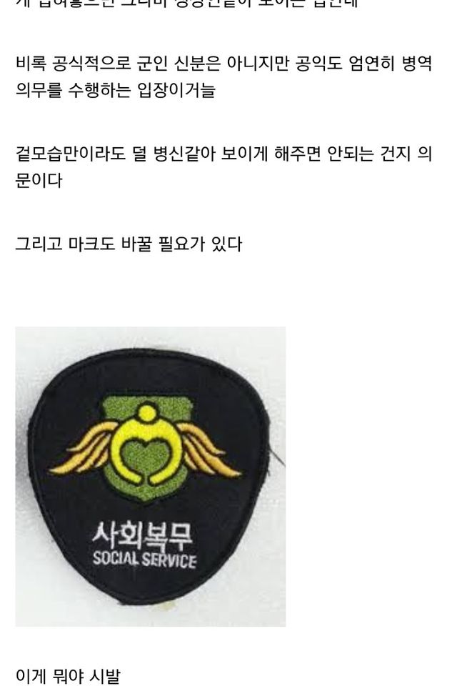 그가 요구했던 공익근무요원의 마크까지 바뀌었다.